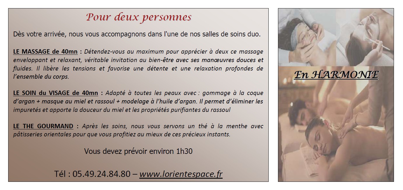 pour les 2 personnes : massage oriental relaxant de 40 mn + soin du visage de 40 mn + thé gourmand