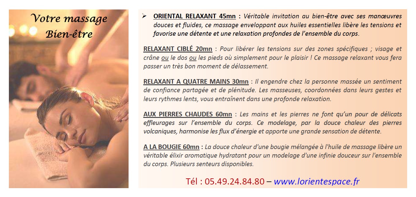 Dans notre SPA Oriental vous trouverez : rituels du hammam, gommage au savon noir, enveloppement au rassoul, massage relaxant, massage du monde, massage femme enceinte, massage enfant + parent, soins du visage à l'huile d'Argan, soins du corps, soins ou rituels en couple, soins ou rituels en DUO ou groupes ...