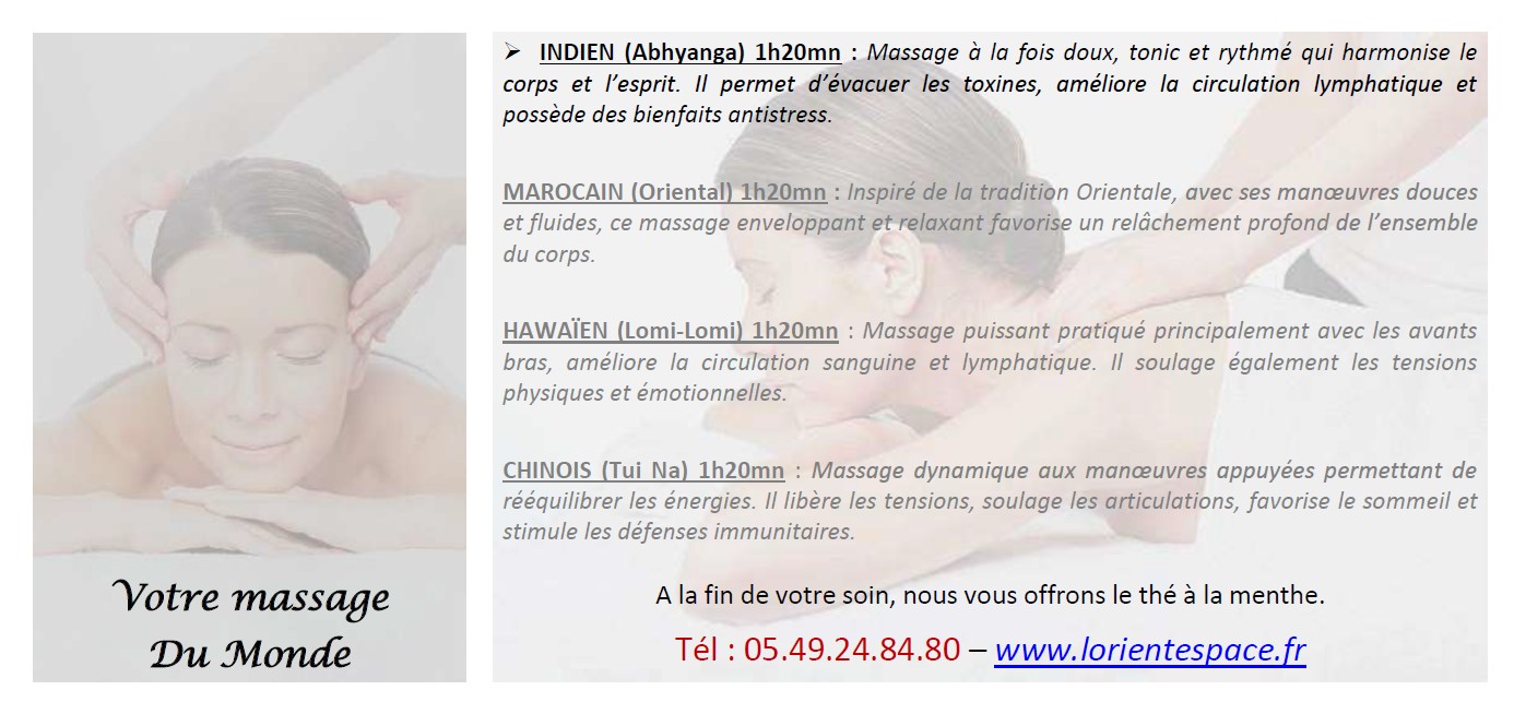 massage liant corps et esprit qui permet d’évacuer les toxines. Il améliore la circulation lymphatique et possède des bienfaits antistress.